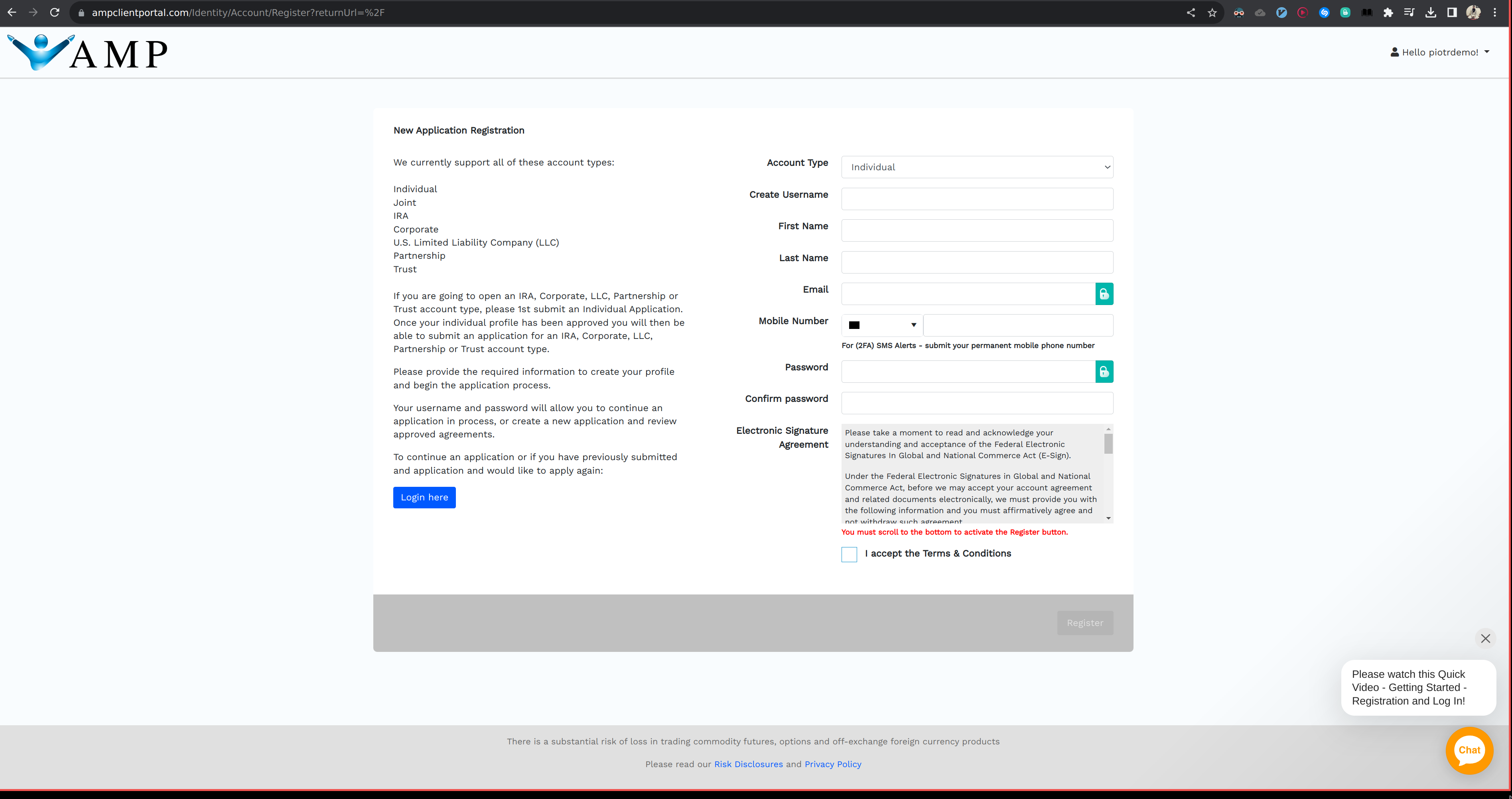 Before getting started, it is important to note that AMP has 2 branches: + AMP futures is based in the US and allows only futures trading + AMP Global is based in the EU, allows for futures and CFD's The reason why we choose AMP futures is because of their flexible fee structure, both in commissions and withdrawal fees.