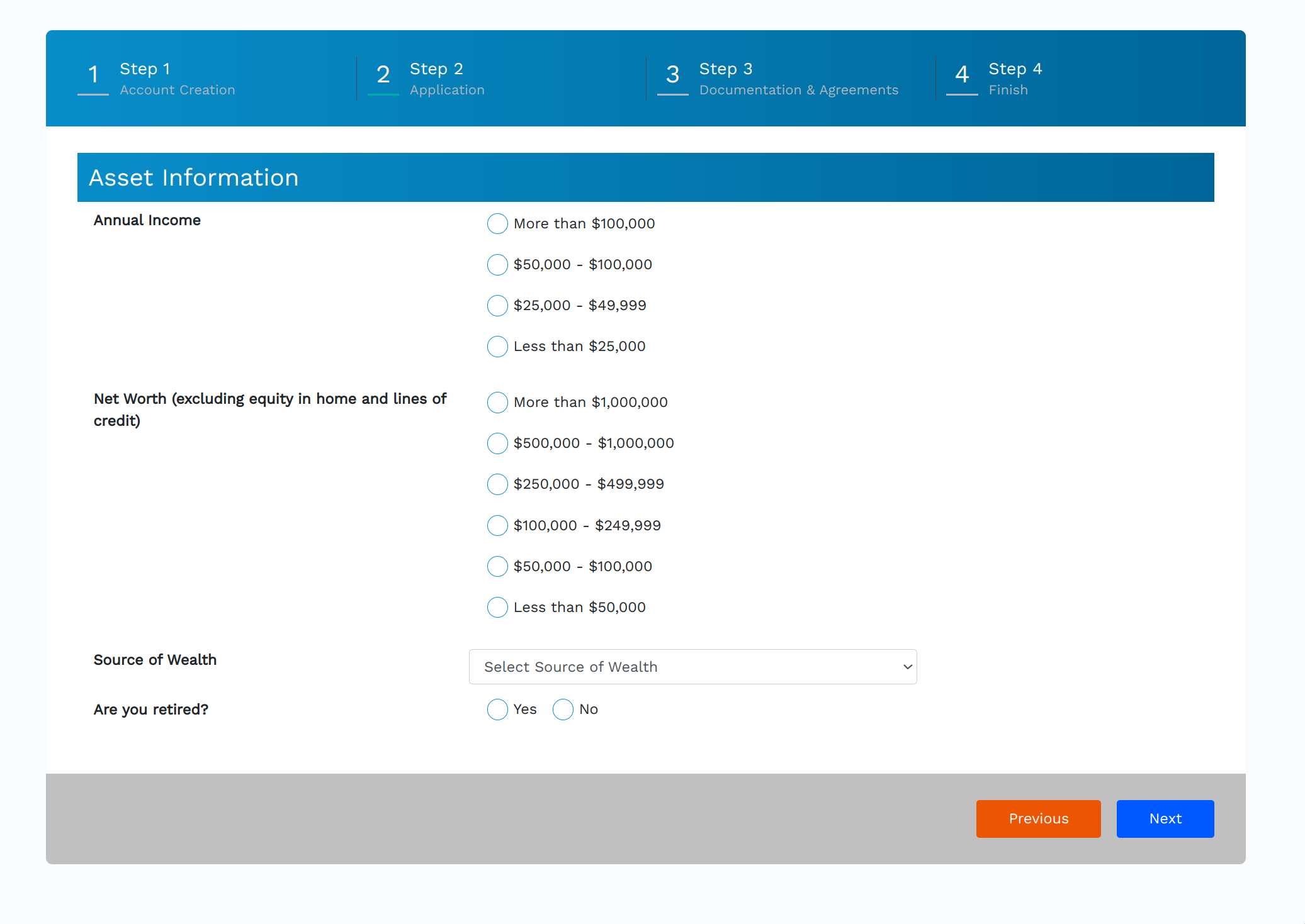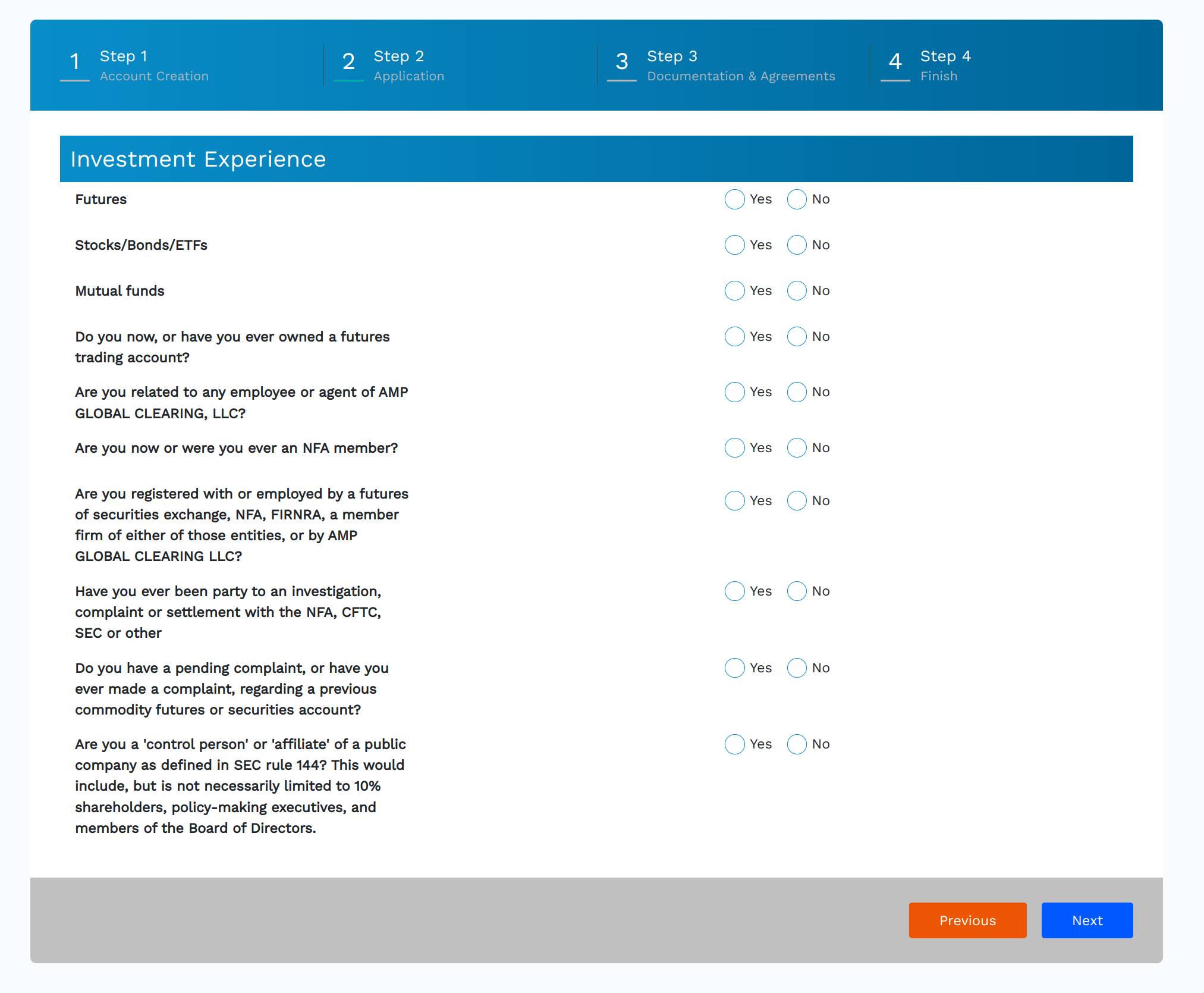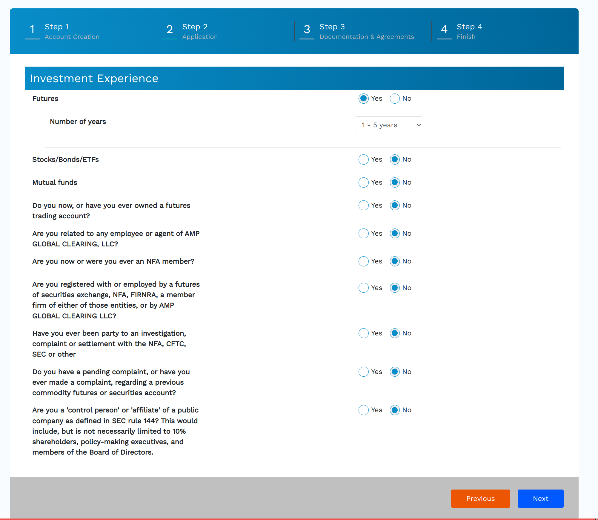 You will now start filling an application. You will be asked various questions which are a mix of KYC and questions related to your trading experience.